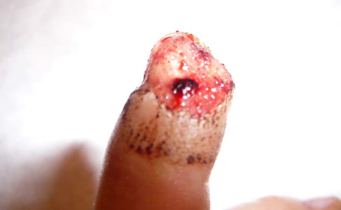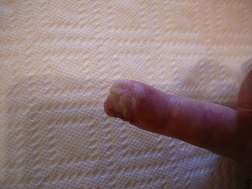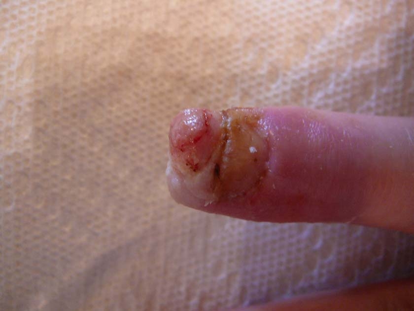 The following photos recorded her finger's healing progress while Renee' adhered to my Primal Diet and followed my advice for her finger.